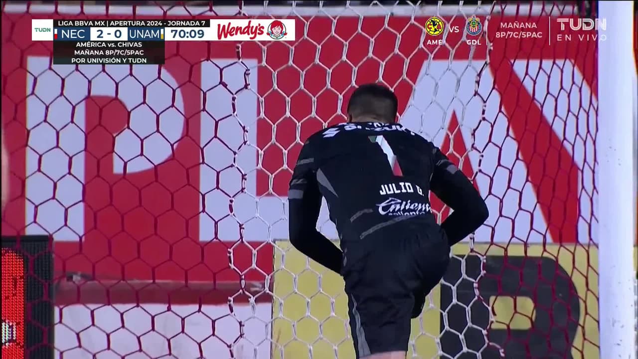¡Gol! Necaxa 2| Pumas UNAM 0. Fernando Arce (Necaxa) disparo de cabeza desde muy cerca por el centro del arco tras el cobro de una falta.