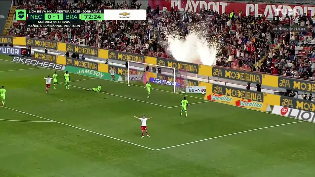 El ‘Puma’ Rodríguez quedó de frente al gol, pero el arquero de Necaxa achicó con gran reflejo y le negó el segundo a Bravos. ¡Figura clave!