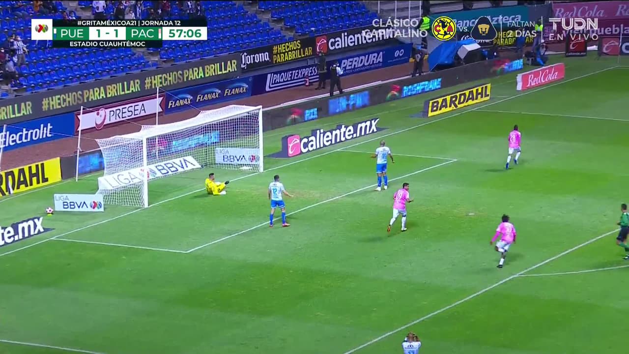 ¡Gooooool! Puebla 1| Pachuca 2. Erick Sánchez (Pachuca) remate de cabeza desde el centro del área.