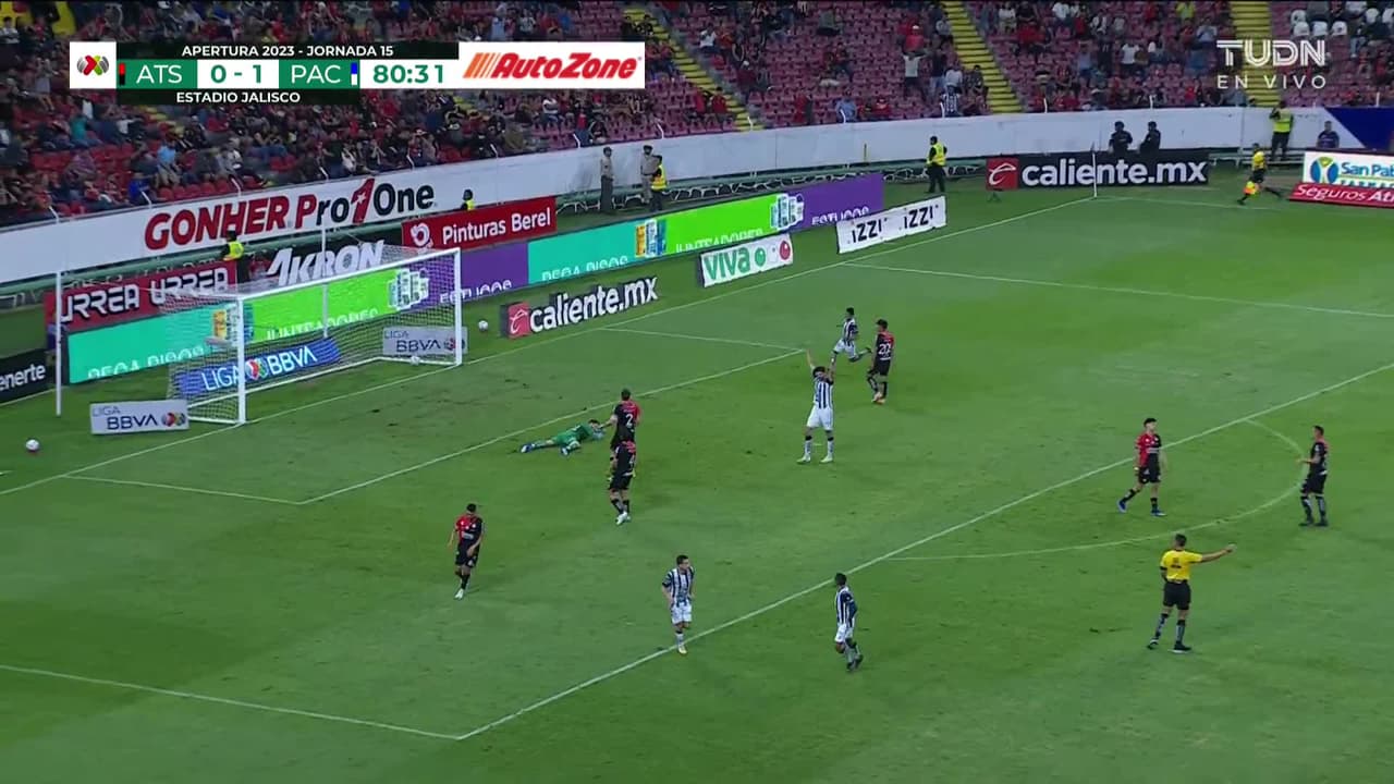 ¡Gol! Atlas 0| Pachuca 2. Érick Sánchez (Pachuca) zurdazo desde fuera del área.
