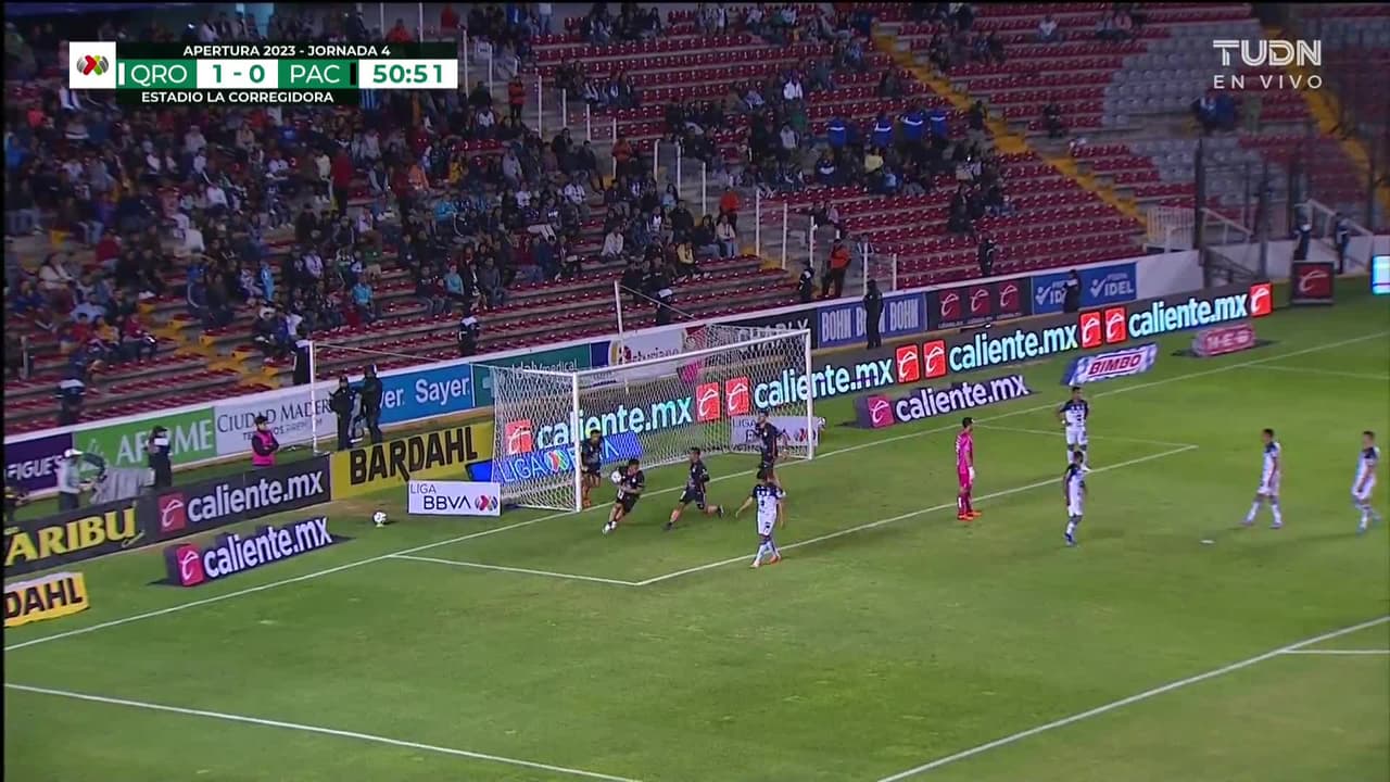¡Gol! Querétaro 1| Pachuca 1. Roberto de la Rosa (Pachuca) zurdazo desde el centro del área al ángulo superior izquierdo. Asistencia de Érick Sánchez.