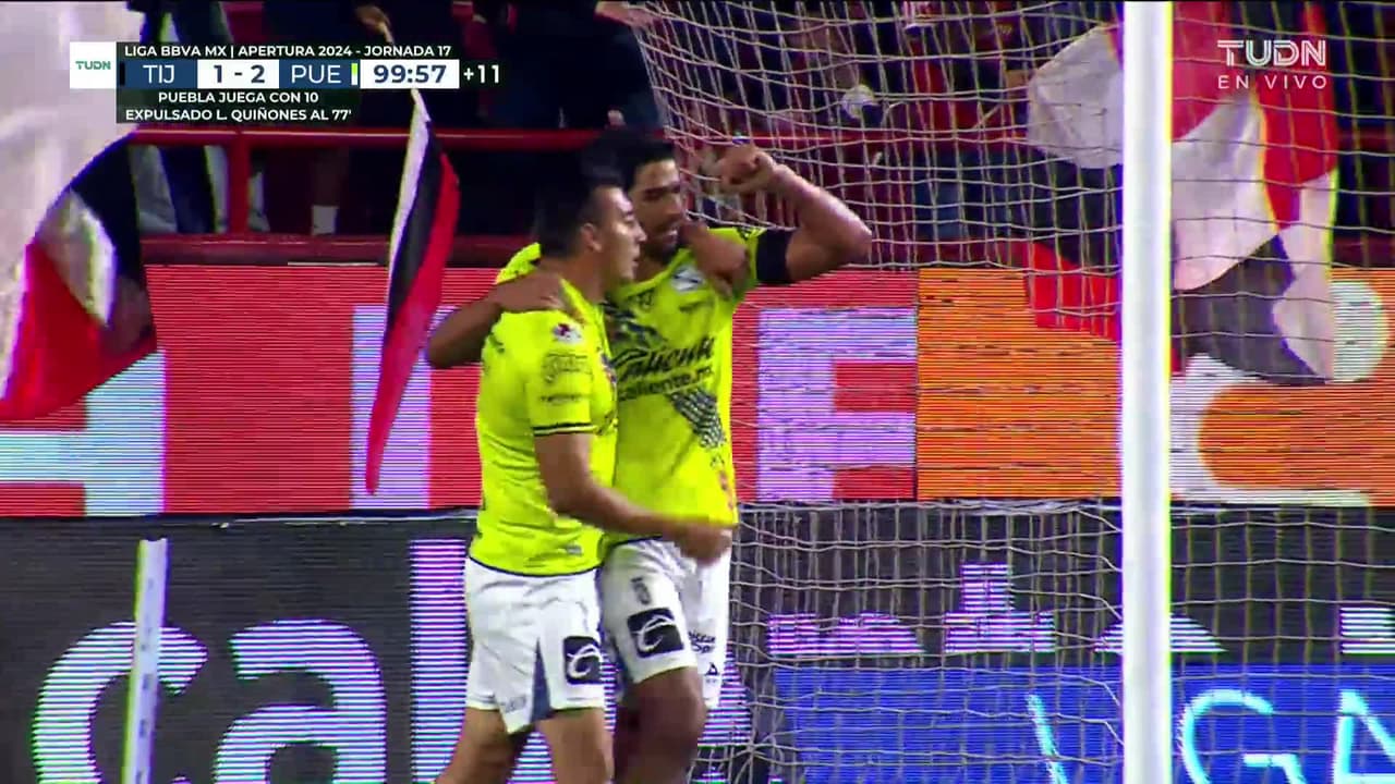 ¡Gol! Club Tijuana 1| Puebla 2. Daniel Álvarez (Puebla) Disparo con la derecha desde el centro del área.