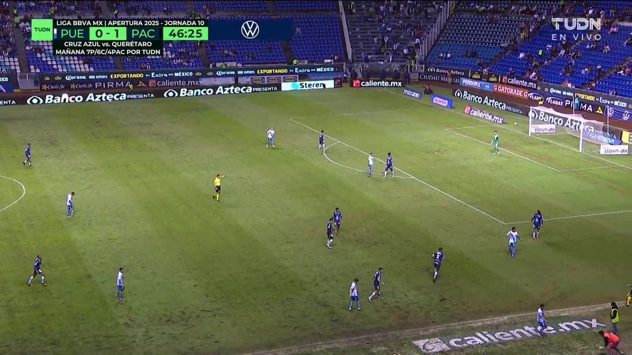 ¡Gol! Puebla 1| Pachuca 1. Emiliano Gómez (Puebla) Disparo con la derecha desde el lado izquierdo dentro del área.