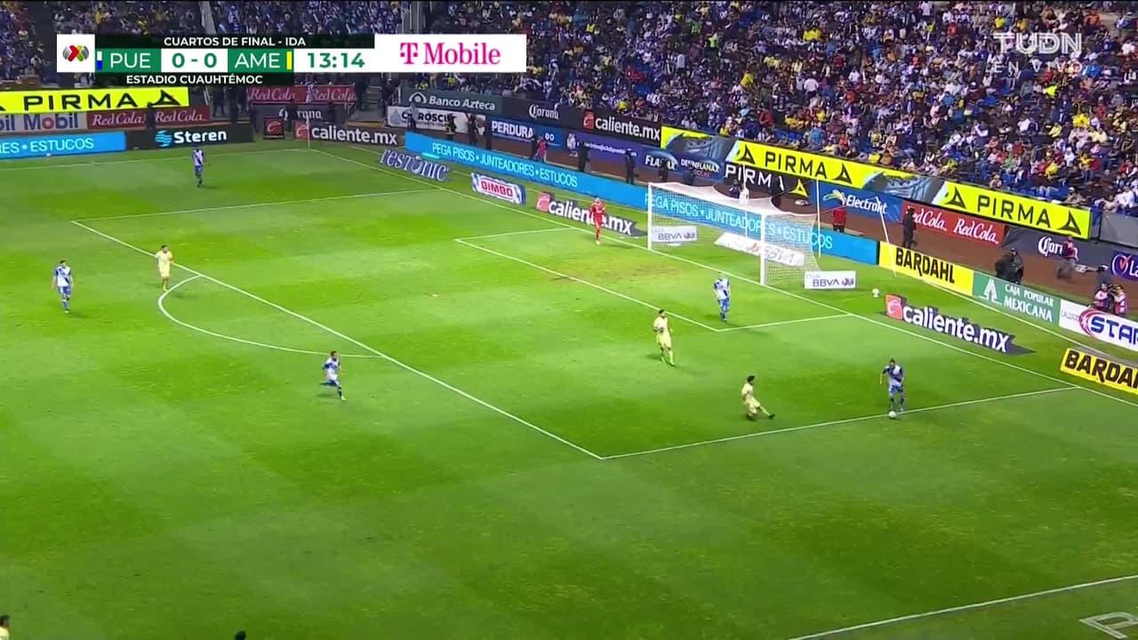 ¡Gol! Puebla 1| América 0. Jordi Cortizo (Puebla) Disparo con la derecha desde el centro del área.