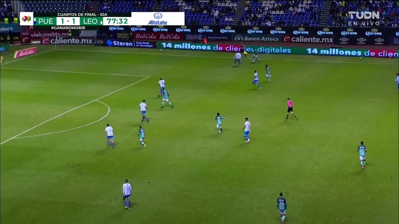 ¡Gol! Puebla 2| León 1. Maximiliano Araujo (Puebla) zurdazo desde el lado izquierdo dentro del área.
