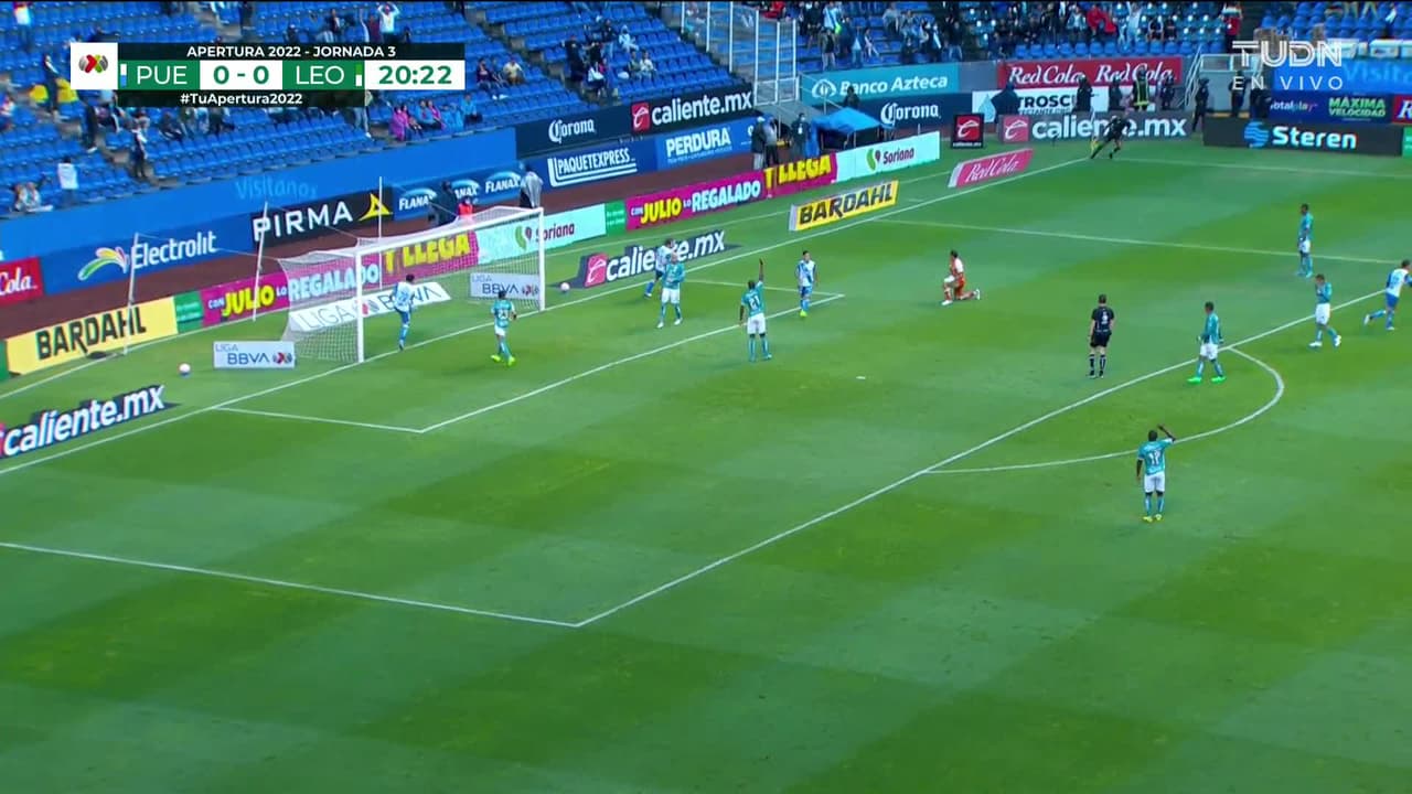 ¡Gol! Puebla 1| León 0. Omar Fernández (Puebla) Disparo con la derecha desde el centro del área disparo rastrero| junto al palo izquierdo. Asistencia de Gustavo Ferrareis después de un pase en profundidad.