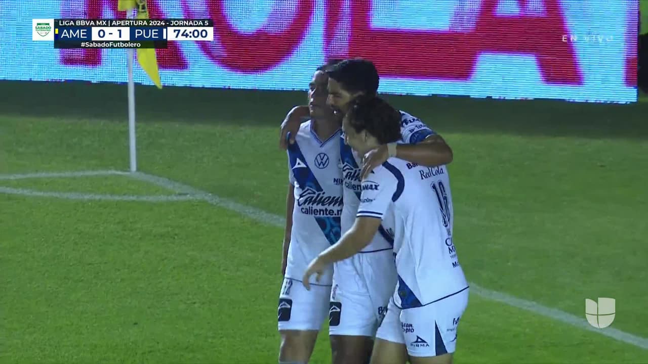 ¡Gol! América 0| Puebla 1. Raúl Castillo (Puebla) Disparo con la derecha desde el centro del área.