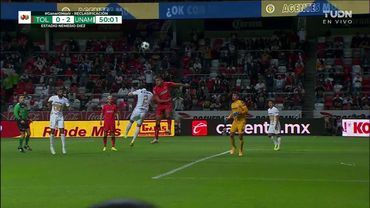 ¡Gol! Toluca 0| Pumas UNAM 2. Juan Ignacio Dinenno (Pumas UNAM) Disparo con la derecha desde el centro del área por el lado derecho de la portería.