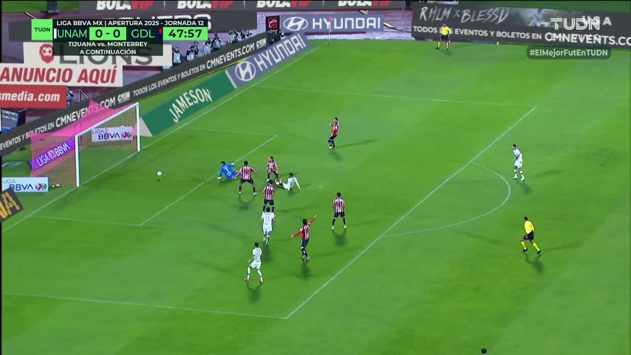 ¡Gol! Pumas UNAM 1| Chivas 0. Pedro Vite (Pumas UNAM) zurdazo desde el centro del área.