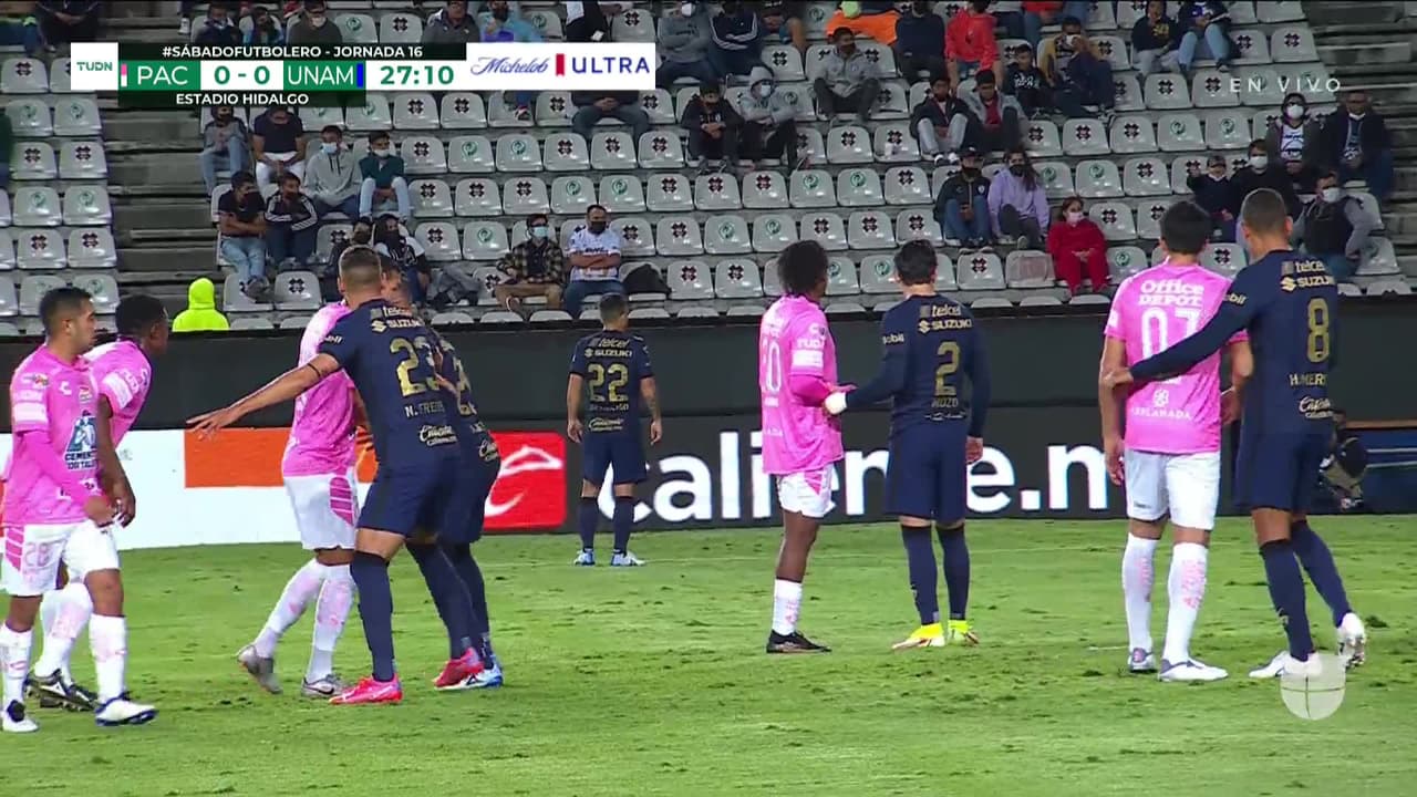 ¡Gol! Pachuca 0| Pumas UNAM 1. Washington Corozo (Pumas UNAM) zurdazo desde el centro del área por el lado derecho de la portería. Asistencia de Juan Ignacio Dinenno con un centro al área.