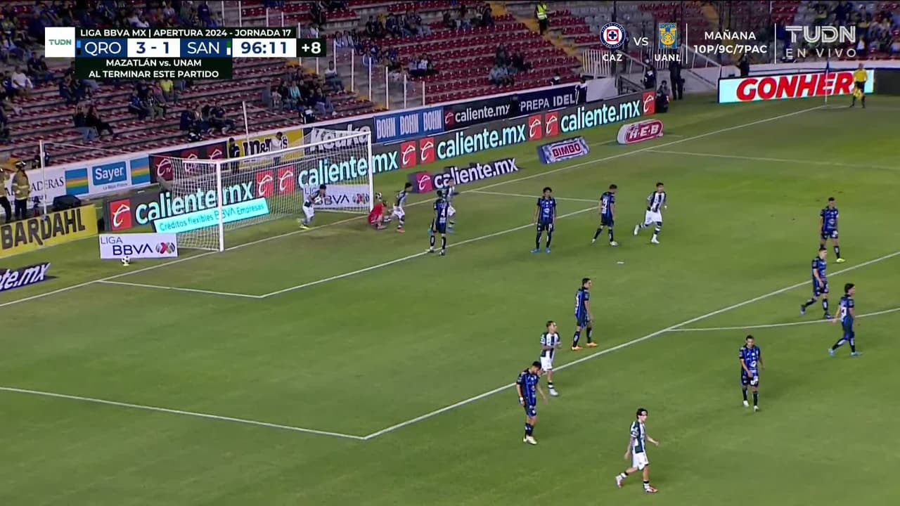 ¡Gol! Querétaro 3| Santos Laguna 2. Franco Fagúndez (Santos Laguna) marca de tiro libre directo| Disparo con la derecha.