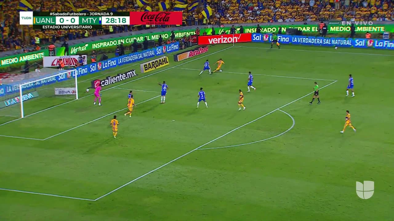 ¡Gol! Tigres 1| Monterrey 0. André-Pierre Gignac (Tigres) disparo de cabeza desde el centro del área disparo rastrero| junto al palo izquierdo. Asistencia de Sebastián Córdova con un centro al área.