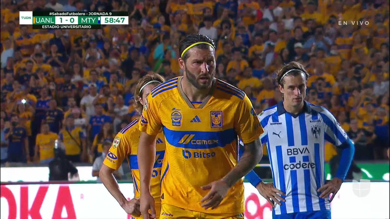 ¡Gol! Tigres 2| Monterrey 0. André-Pierre Gignac (Tigres) convirtió el penalti Disparo con la derecha.