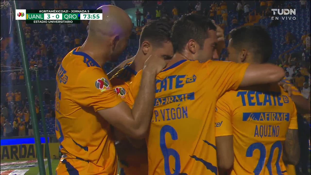 ¡Gol! Tigres 3| Querétaro 0. Florian Thauvin (Tigres) Disparo con la derecha desde el centro del área por arriba. Asistencia de Javier Aquino.