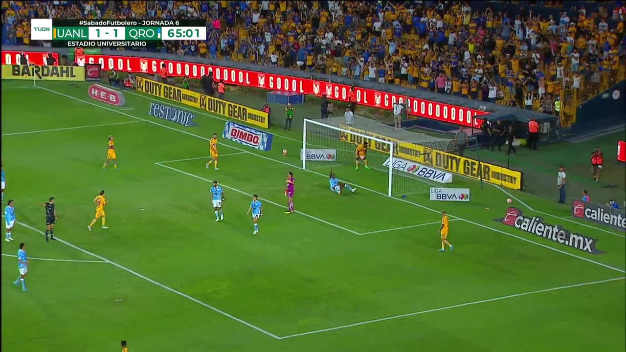 ¡Gol! Tigres 2| Querétaro 1. Jordy Caicedo (Tigres) Disparo con la derecha desde el centro del área.