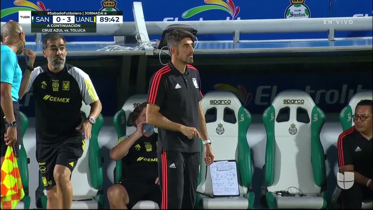 ¡Gol! Santos Laguna 0| Tigres 3. Nicolás Ibáñez (Tigres) Disparo con la derecha desde el centro del área.