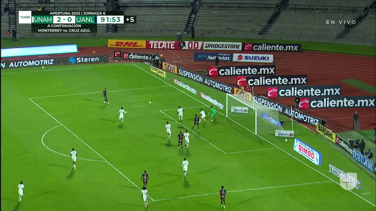 ¡Gol! Pumas UNAM 2| Tigres 1. Ozziel Herrera (Tigres) disparo de cabeza desde el centro del área.