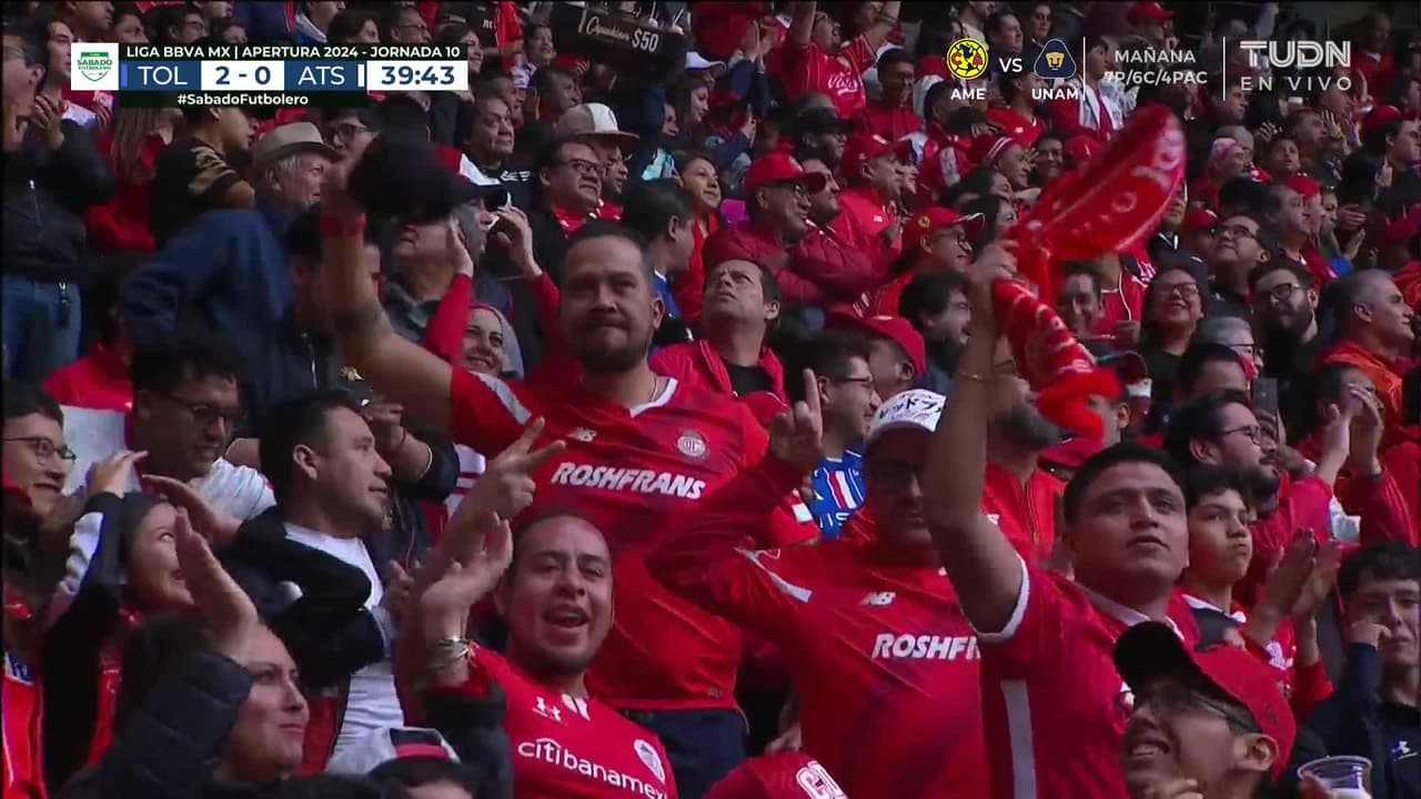 ¡Gol! Toluca 2| Atlas 0. Helinho (Toluca) zurdazo desde el centro del área.