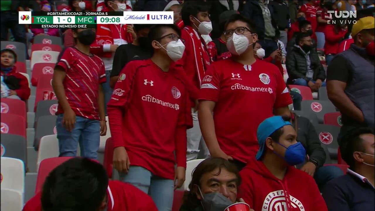 ¡Gol! Toluca 1| Mazatlán FC 0. Ian González (Toluca) disparo de cabeza desde muy cerca por el centro del arco. Asistencia de Miguel Barbieri tras un saque de esquina.