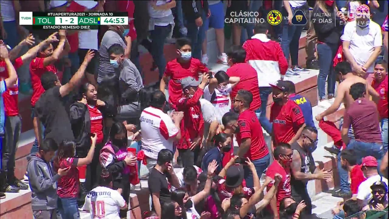 ¡Gol! Toluca 1| Atlético San Luis 2. Ian González (Toluca) convirtió el penalti Disparo con la derecha.