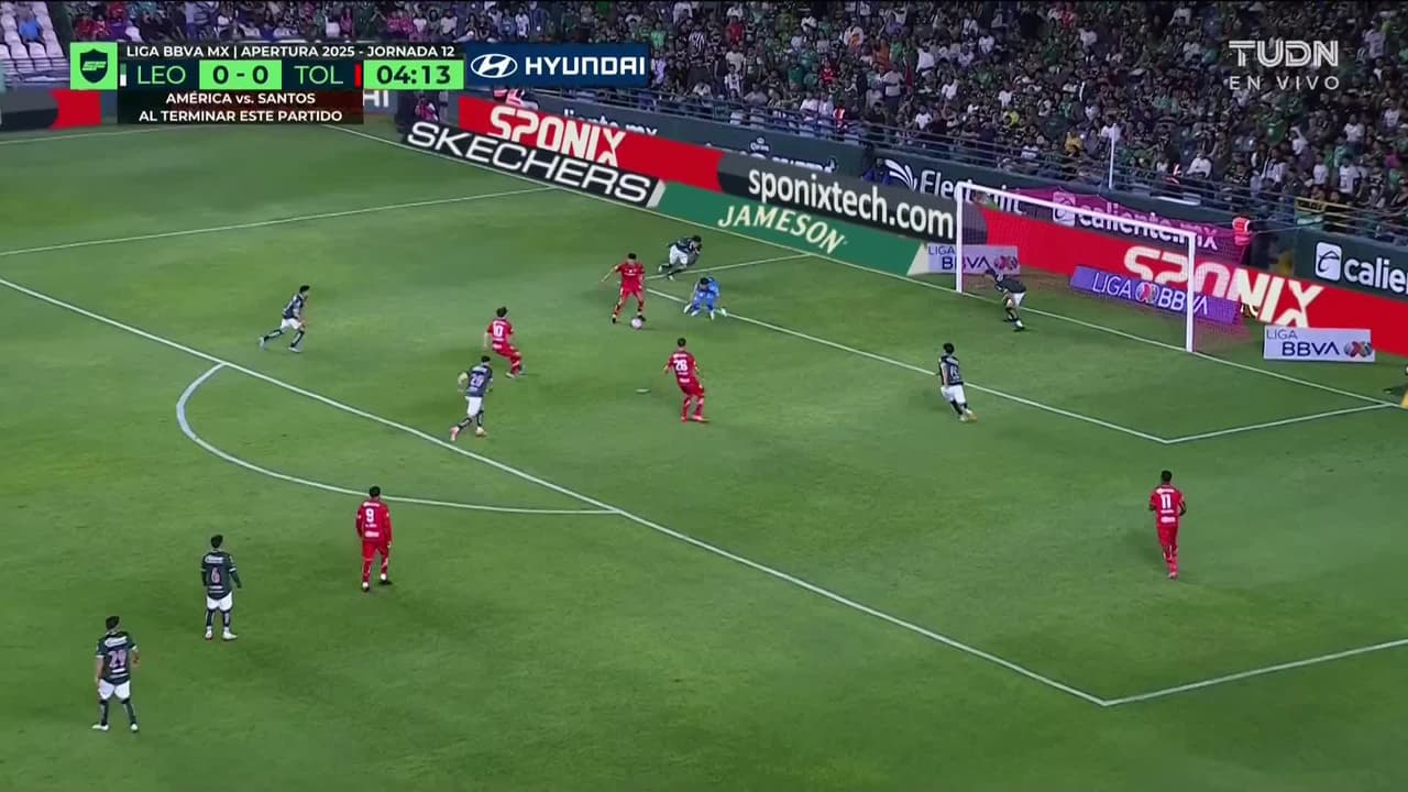 ¡Gol! León 0| Toluca 1. Jesús Angulo (Toluca) zurdazo desde el centro del área.