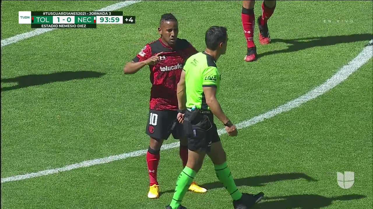 ¡Gol! Toluca 2| Necaxa 0. Joao Plata (Toluca) Disparo con la derecha desde fuera del área.