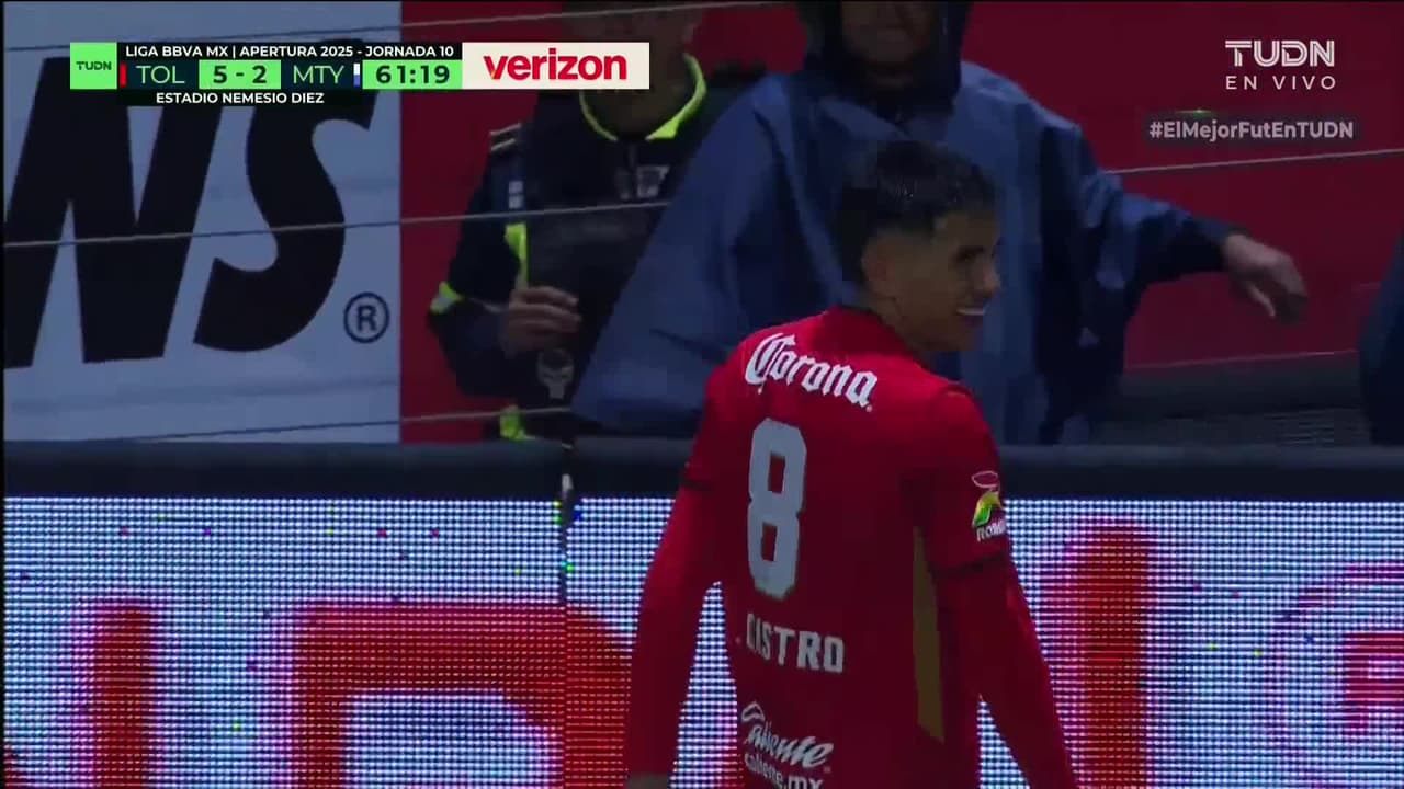 ¡Gol! Toluca 6| Monterrey 2. Nicolás Castro (Toluca) zurdazo desde el centro del área.