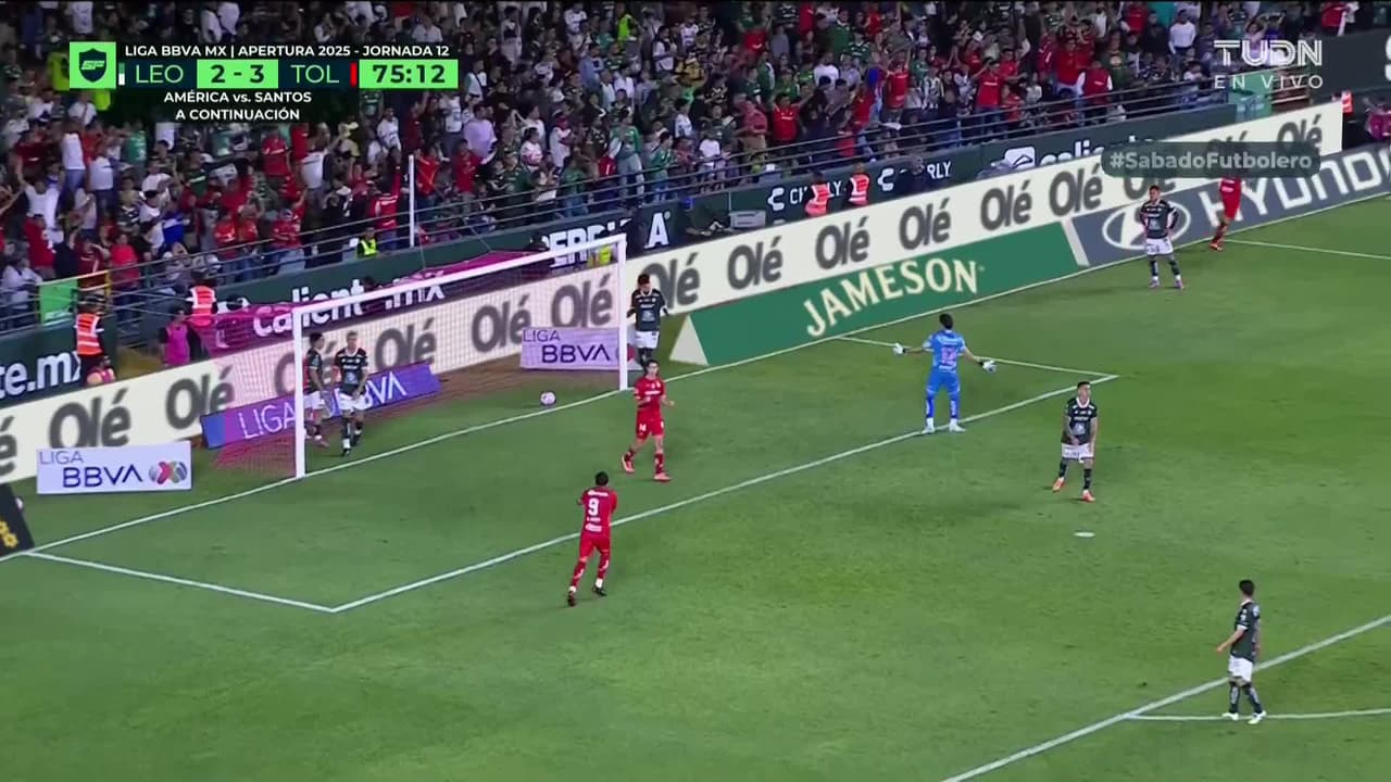 ¡Gol! León 2| Toluca 4. Paulinho (Toluca) disparo de cabeza a quemarropa desde el lado derecho.