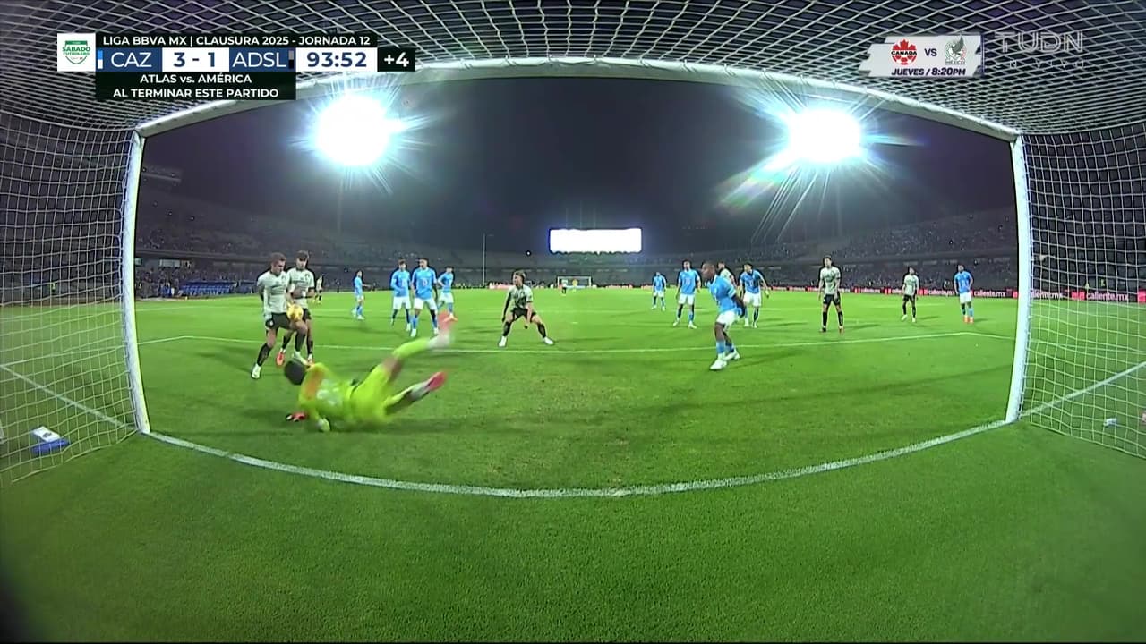 Tras la revisión del VAR el gol es anulado por que Abitia empuja el balón con la mano.