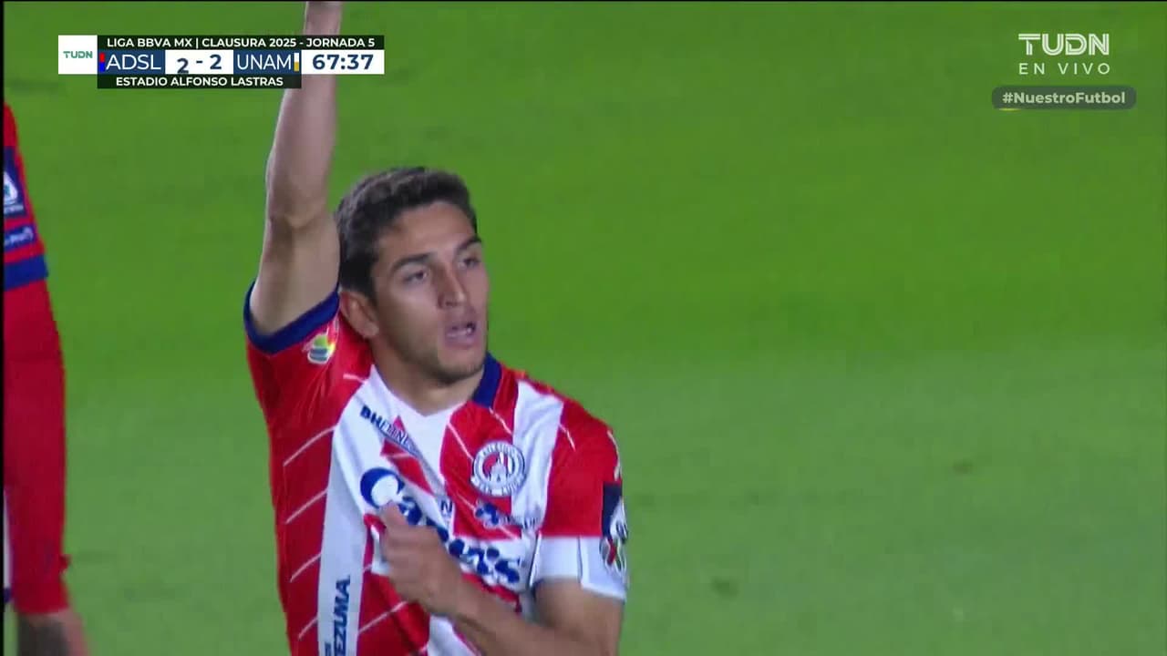 ¡San Luis no se rinde! Los rojiblancos anotan gracias a un centro peligroso en el área y ponen el 2-2 en el marcador.