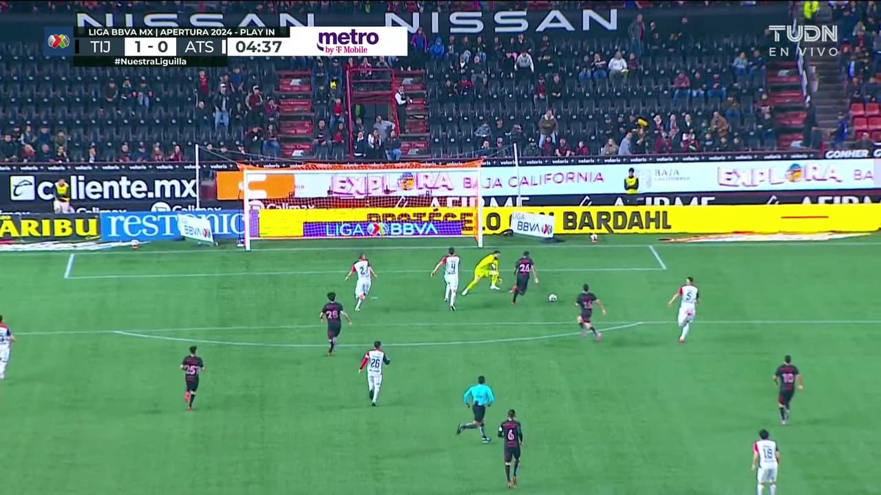 El delantero colombiano aprovecha el error en la defensa del Atlas y define de gran manera ante la salida de Camilo Vargas.