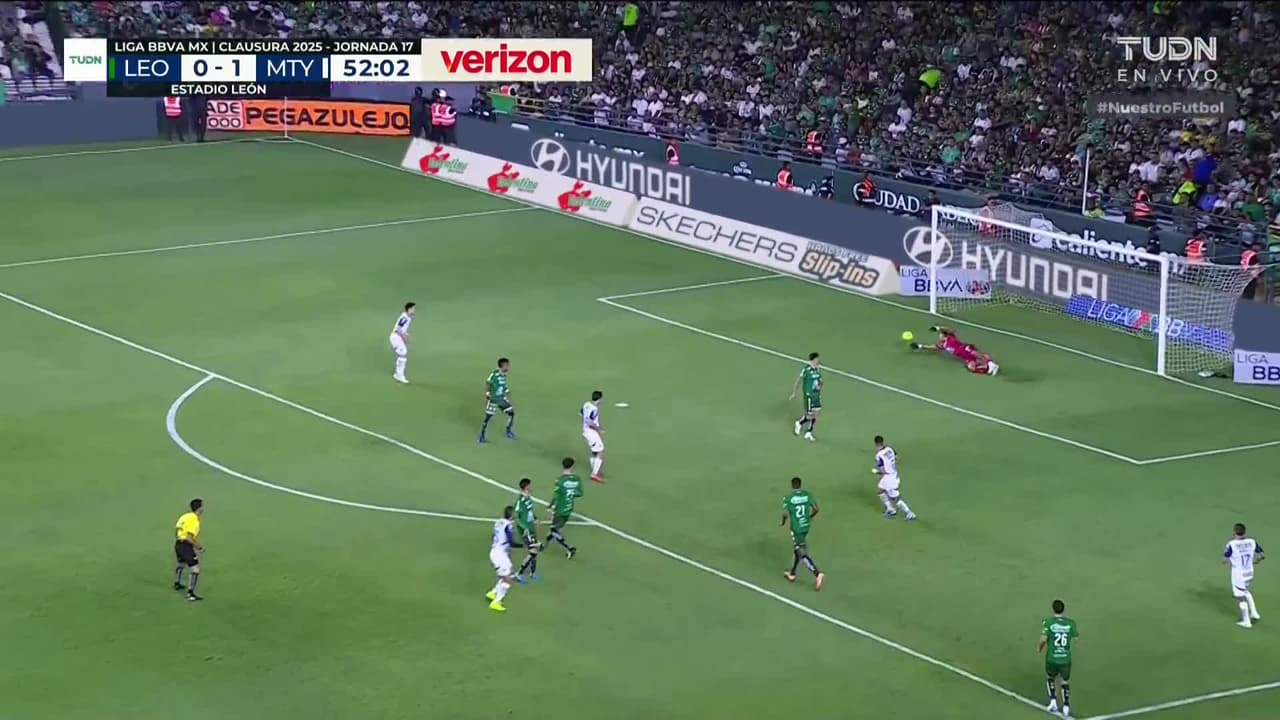 Rayados están dando la sorpresa y el mediocampista colombiano saca un tiro desde fuera del área imposible para Blanco.