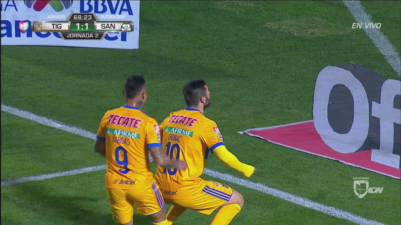 Golazo de Tigres: De Sosa para Gignac y los campeones ya ganan 2-1