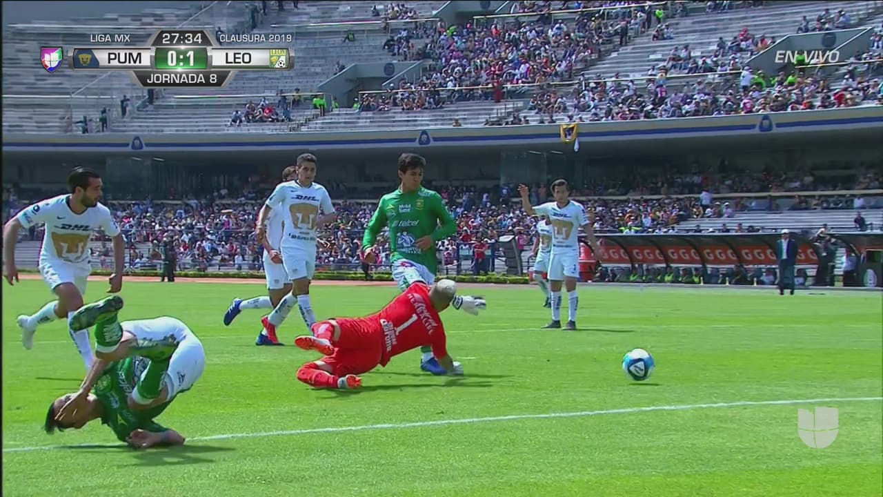 El juvenil mexicano coronó una magnífica de Luis Montes para poner el 0-1 de León sobre Pumas.