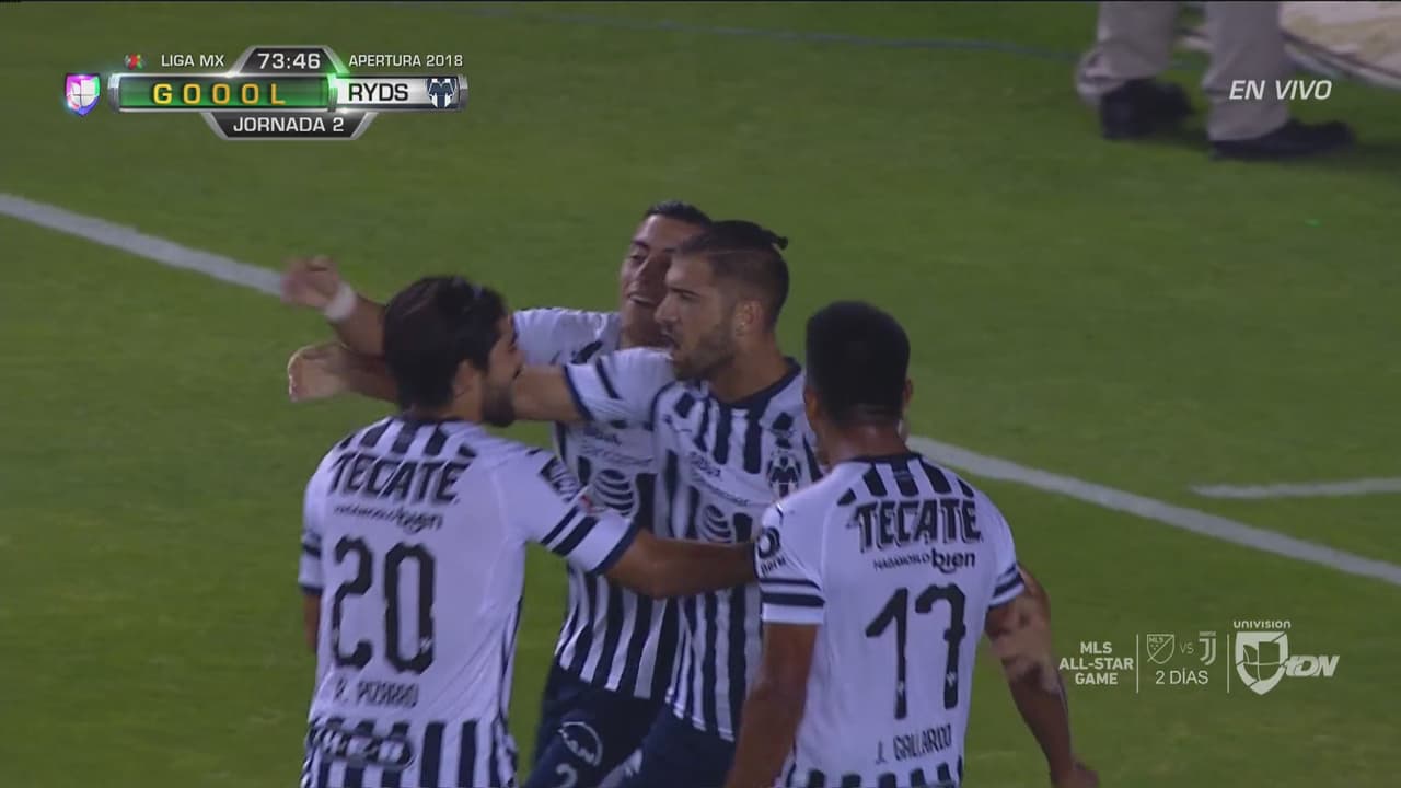 Nicolás Sánchez ejecuta con fuerza una pena máxima que le hicieron a Avilés Hurtado, duro al centro para poner en ventaja a Rayados.