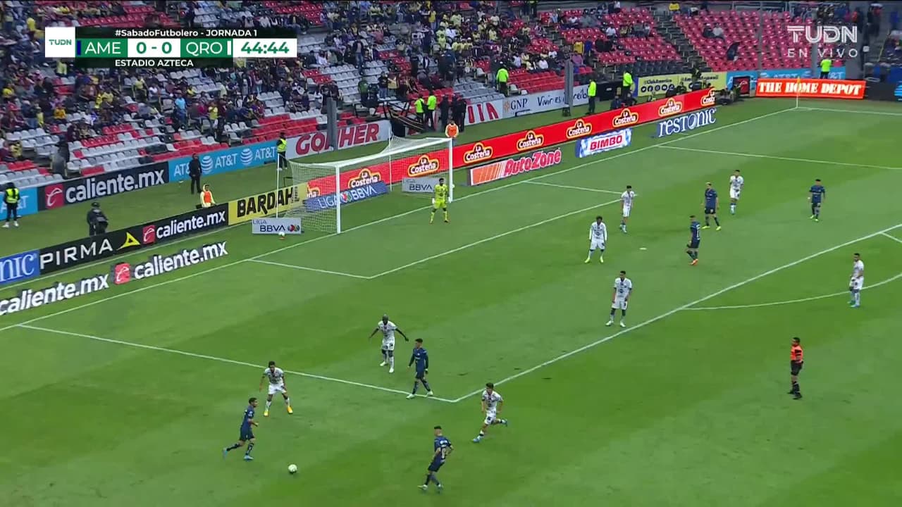 ¡Gol! América 1| Querétaro 0. Alejandro Zendejas (América) con un tiro a quemarropa desde el lado derecho.