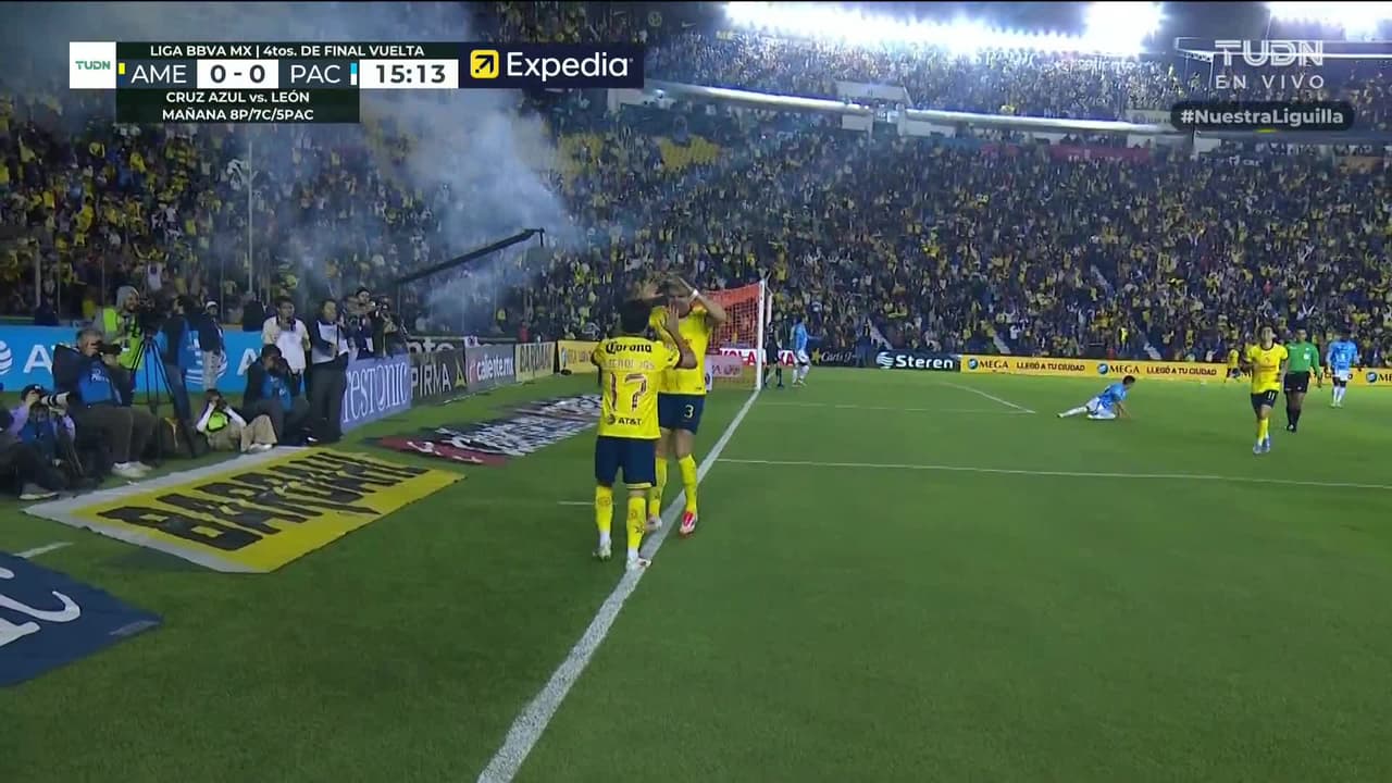 ¡Gol! América 1| Pachuca 0. Álex Zendejas (América) zurdazo desde el lado izquierdo dentro del área por el lado derecho de la portería.