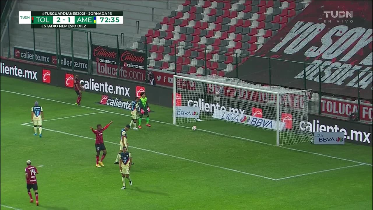 ¡Gol! Toluca 3| América 1. Alexis Canelo (Toluca) Disparo con la derecha desde el centro del área.