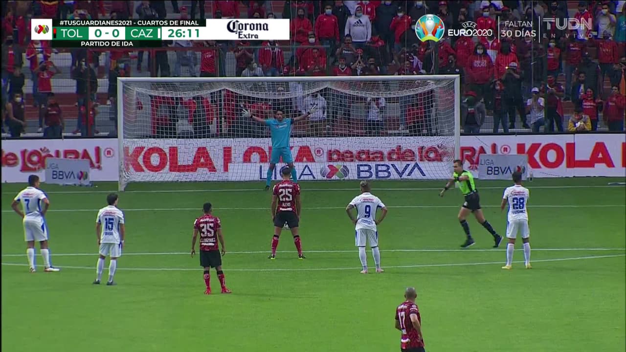 ¡Gol! Toluca 1| Cruz Azul 0. Alexis Canelo (Toluca) convirtió el penalti Disparo con la derecha al centro de la portería.
