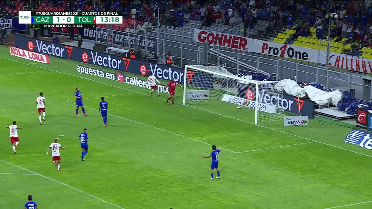 ¡Gol! Cruz Azul 1| Toluca 1. Alexis Canelo (Toluca) zurdazo desde el centro del área al ángulo superior izquierdo. Asistencia de Rubens Sambueza con un centro al área.