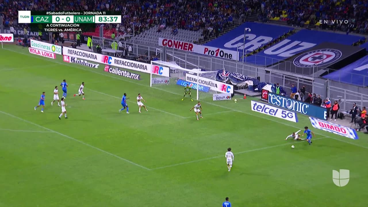 ¡Gol! Cruz Azul 1| Pumas UNAM 0. Alonso Escoboza (Cruz Azul) zurdazo desde el lado izquierdo dentro del área.