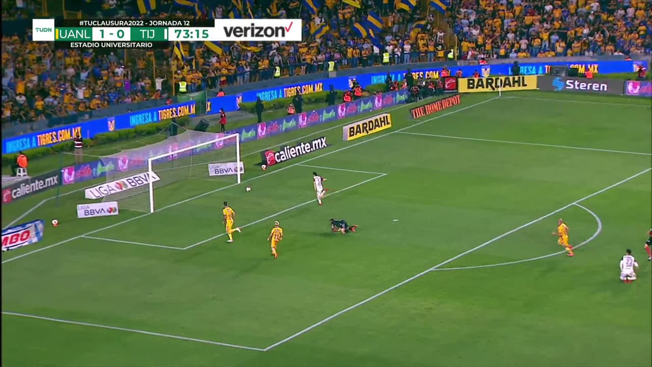 ¡Gol! Tigres 2| Club Tijuana 0. André-Pierre Gignac (Tigres) Disparo con la derecha desde el centro del área por el lado derecho de la portería. Asistencia de Carlos González con un pase de cabeza.