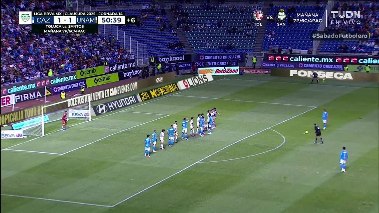 ¡Gol! Cruz Azul 2| Pumas UNAM 1. Andrés Montaño (Cruz Azul) marca de tiro libre directo| zurdazo.