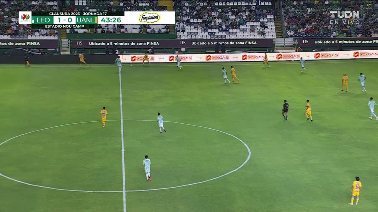 ¡Gol! León 2| Tigres 0. Brian Rubio (León) disparo de cabeza desde el centro del área por arriba. Asistencia de Joel Campbell con un centro al área.