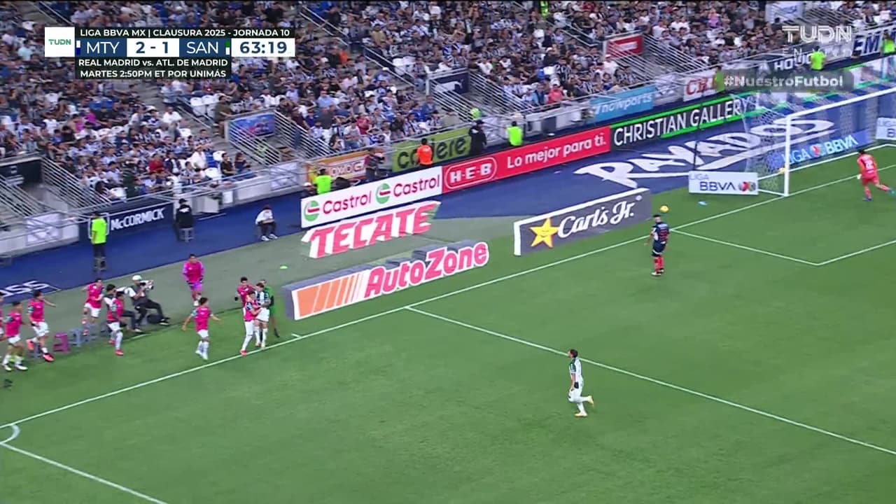 ¡Gol! Monterrey 2| Santos Laguna 2. Bruno Barticciotto (Santos Laguna) zurdazo desde el lado izquierdo dentro del área.