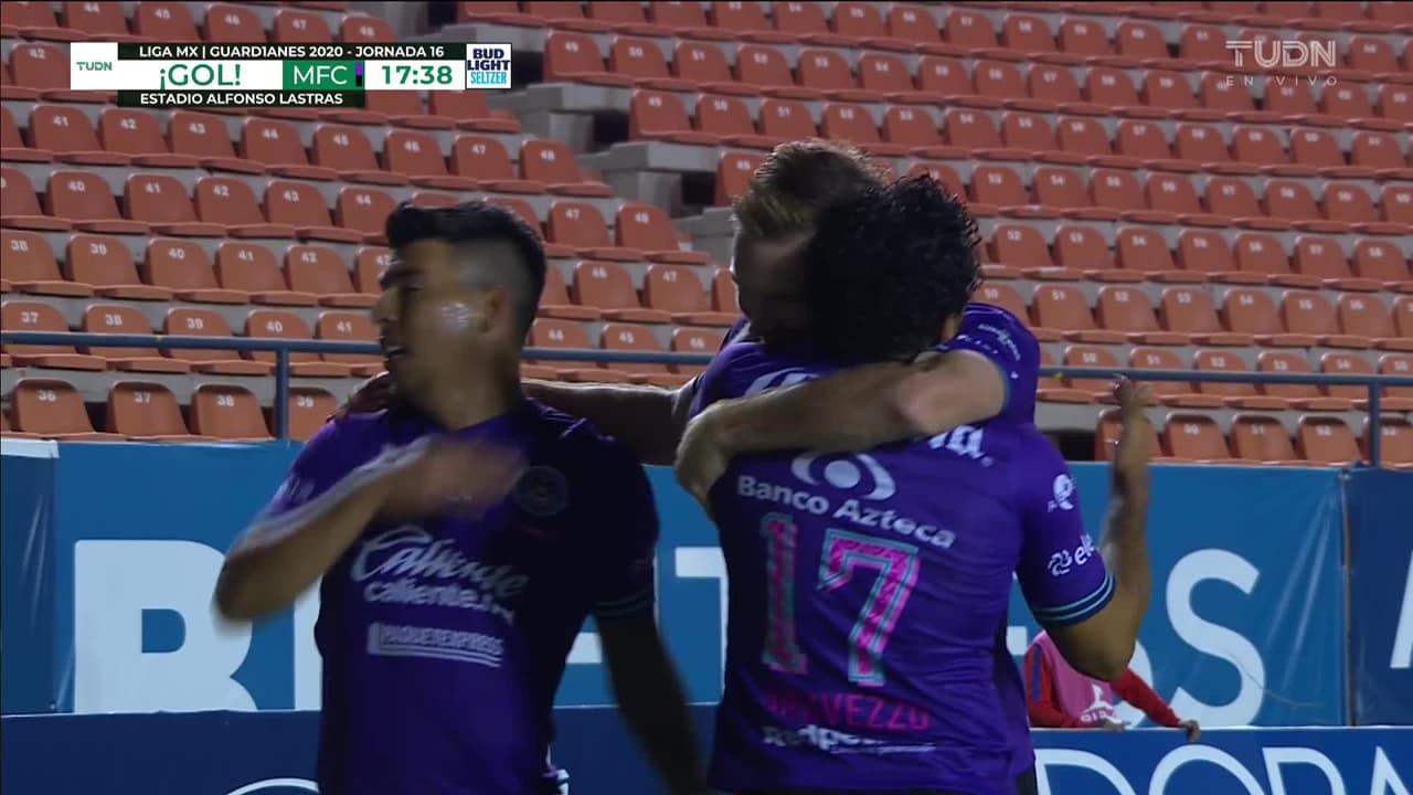 ¡Gol! Atlético San Luis 0| Mazatlán FC 3. Camilo Sanvezzo (Mazatlán FC) disparo de cabeza desde el centro del área disparo rastrero| junto al palo izquierdo. Asistencia de Luis Mendoza con un centro al área.