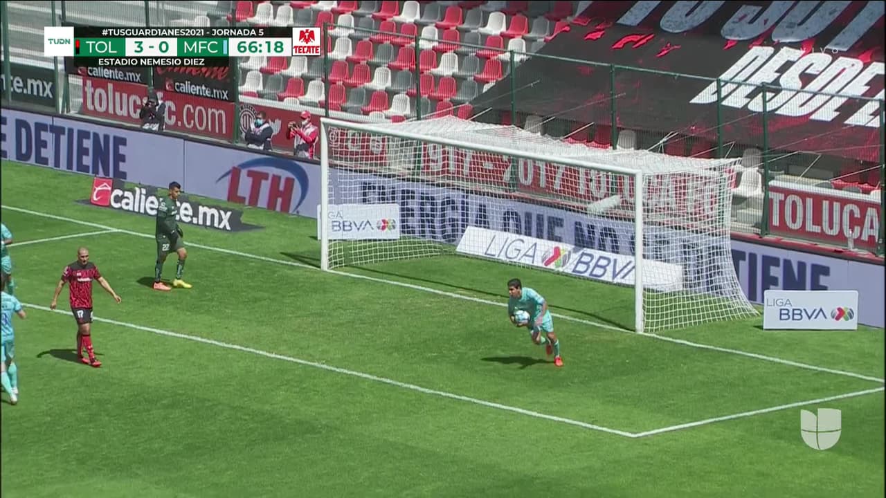¡Gol! Toluca 3| Mazatlán FC 1. Camilo Sanvezzo (Mazatlán FC) zurdazo desde el lado izquierdo dentro del área disparo rastrero| junto al palo izquierdo. Asistencia de Carlos Vargas.