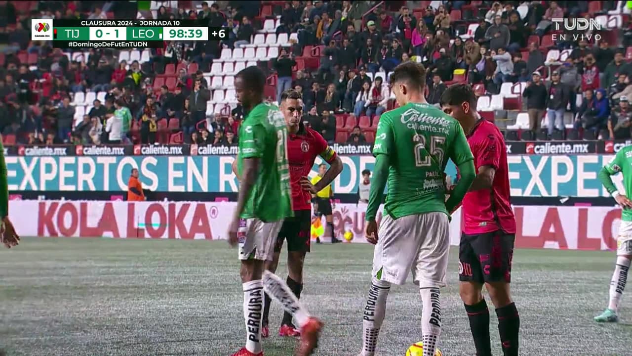 ¡Gol! Club Tijuana 1| León 1. Christian Rivera (Club Tijuana) convirtió el penalti Disparo con la derecha disparo rastrero| junto al palo izquierdo.
