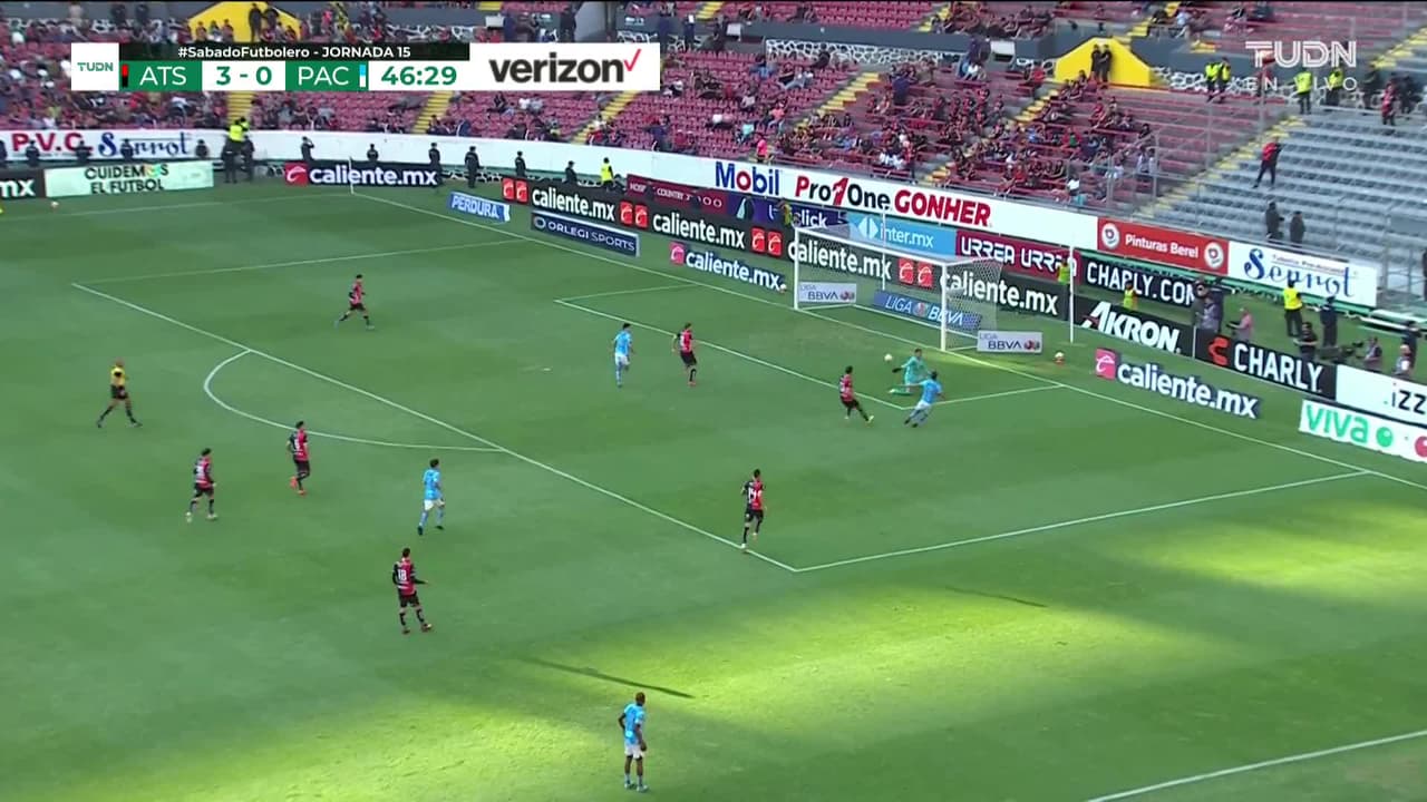 ¡Gol! Atlas 3| Pachuca 1. Cristian Arango (Pachuca) Disparo con la derecha desde el lado derecho dentro del área disparo rastrero| junto al palo izquierdo. Asistencia de Paulino.