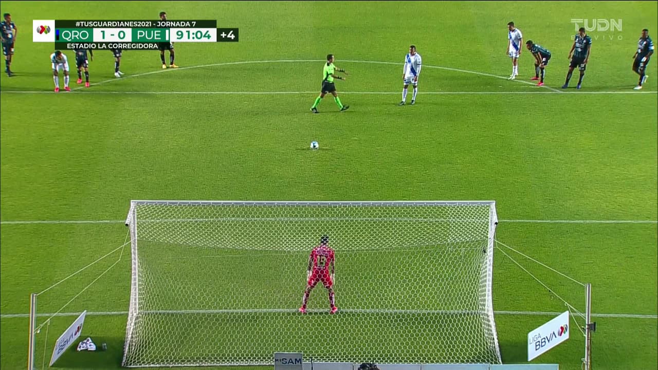 ¡Gol! Querétaro 1| Puebla 1. Daniel Álvarez (Puebla) convirtió el penalti Disparo con la derecha disparo rastrero| junto al palo izquierdo.